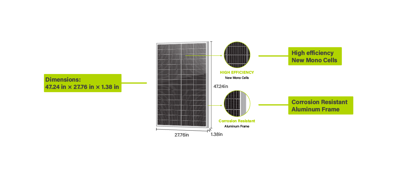 Newpowa's 170W 12V Monocrystalline High-Efficiency Solar Panel is commonly paired with RV, marine, camping, traffic signals, and various off-grid applications.
