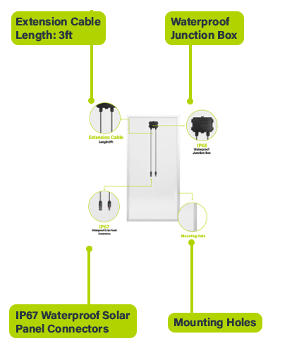 - Durable TPT back sheet - dissipates heat to insure better panel performance and lifespan