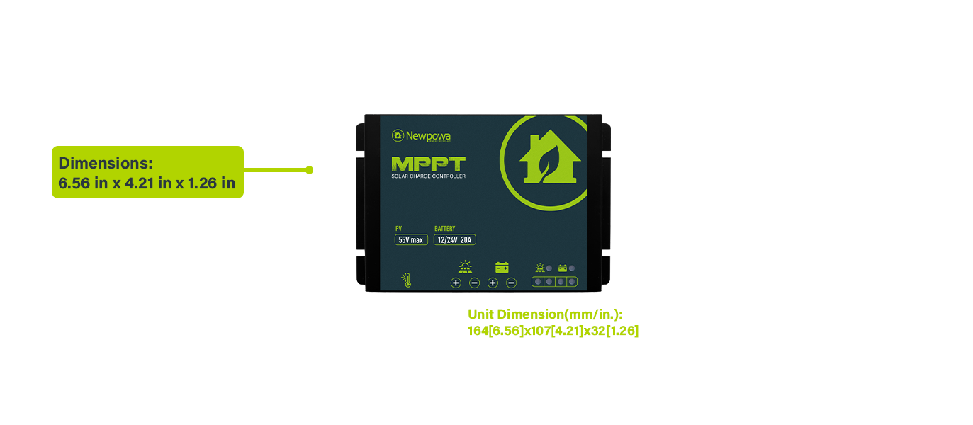 Newpowa's New Weatherproof 20A Solar Charge Controller with Maximum Power Point Tracking (MPPT) technology maintains compatibility with 12 and 24V systems. With up to 98% charge conversion efficiency, it ensures maximum power point solar charging that gets more energy to your battery bank. MPPT battery charging can greatly increase the lifetime of your battery and has various unique functions and easy-to-use features.